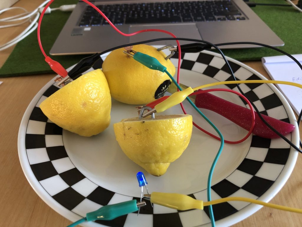 Auch im neuen Jahr sind die MINTmacher zunächst im Online Format unterwegs. In der ersten Januarwoche traf sich ein junges Forscherteam über die Online Plattform Big Blue Button, um gemeinsam mehr über die Themen Elektro & Strom zu erfahren. Jedes Kind hat dafür im Vorfeld des Kurses eine kleine Box mit allen im Kurs benötigten Materialien nach Hause geschickt bekommen, sodass alle problemlos von zu Hause aus die Experimente durchführen konnten. Am ersten Tag wurden nach einem kurzen theoretischen Einführungsblock auch schon die ersten Stromkreise aus einer Batterie, verschiedenen Klemmen und einem Glühlämpchen geschlossen. In den folgenden Tagen wurden die einzelnen Komponenten des Stromkreises immer wieder verändert oder erweitert, sodass zum Beispiel mithilfe einiger Zitronen eine galvanische Zelle geschaffen wurde, die ganz alleine die Batterie ersetzen und das Lämpchen zum Leuchten bringen kann. Mithilfe eines Schalters konnte der Stromkreis unterbrochen und mehrere Lämpchen in Reihen- oder Parallelschaltung eingesetzt werden. Ein besonderes Highlight des Kurses war das Entwickeln des kleinsten Roboters der Welt, dem sogenannten BürstiBot, der nicht nur so klein wie der Kopf einer Zahnbürste ist, sondern auch aus einem Teil des Kopfes besteht. Zum Abschluss erfuhren die acht NachwuchsforscherInnen noch, wie man die Ausrichtung eines Kompasses beeinflussen kann. Mithilfe eines herkömmlichen Eisennagels und einem Draht mit einer Kunststoffisolierung bastelten die TeilnehmerInnen einen Magneten, der später in einen Stromkreis eingebunden wurde. Je nachdem in welche Richtung der Strom nun durch den Draht und Nagel fließt, schlägt die Nadel des Kompasses aus.